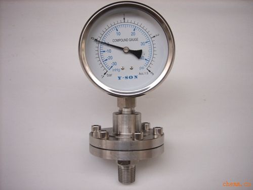 為使通用型壓力表能適用于測量強腐蝕、高溫、高粘度、易結晶、易凝固、有固體浮游物的介質壓力以及必須避免測量介質直接進入通用型壓力儀表和防止沉淀物積聚且易清洗的場合,應必須采用由隔膜隔離器與通用型壓力儀表組成一個系統(tǒng)的隔膜表。