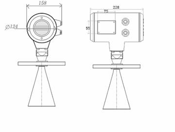 雷達(dá)物位計(jì)是將發(fā)射能量很低的極短的微波脈沖通過天線系統(tǒng)發(fā)射并接收。雷達(dá)波以光速運(yùn)行。運(yùn)行時(shí)間可以通過電子部件被轉(zhuǎn)換成物位信號(hào)。一種特殊的時(shí)間延伸方法可以確保極短時(shí)間內(nèi)穩(wěn)定和精確的測(cè)量。HD-D800系列雷達(dá)物位計(jì)即使在工況比較復(fù)雜,存在虛假回波的情況下,其用最新的微處理技術(shù)和調(diào)試軟件也可以準(zhǔn)確的分析出物位的回波。